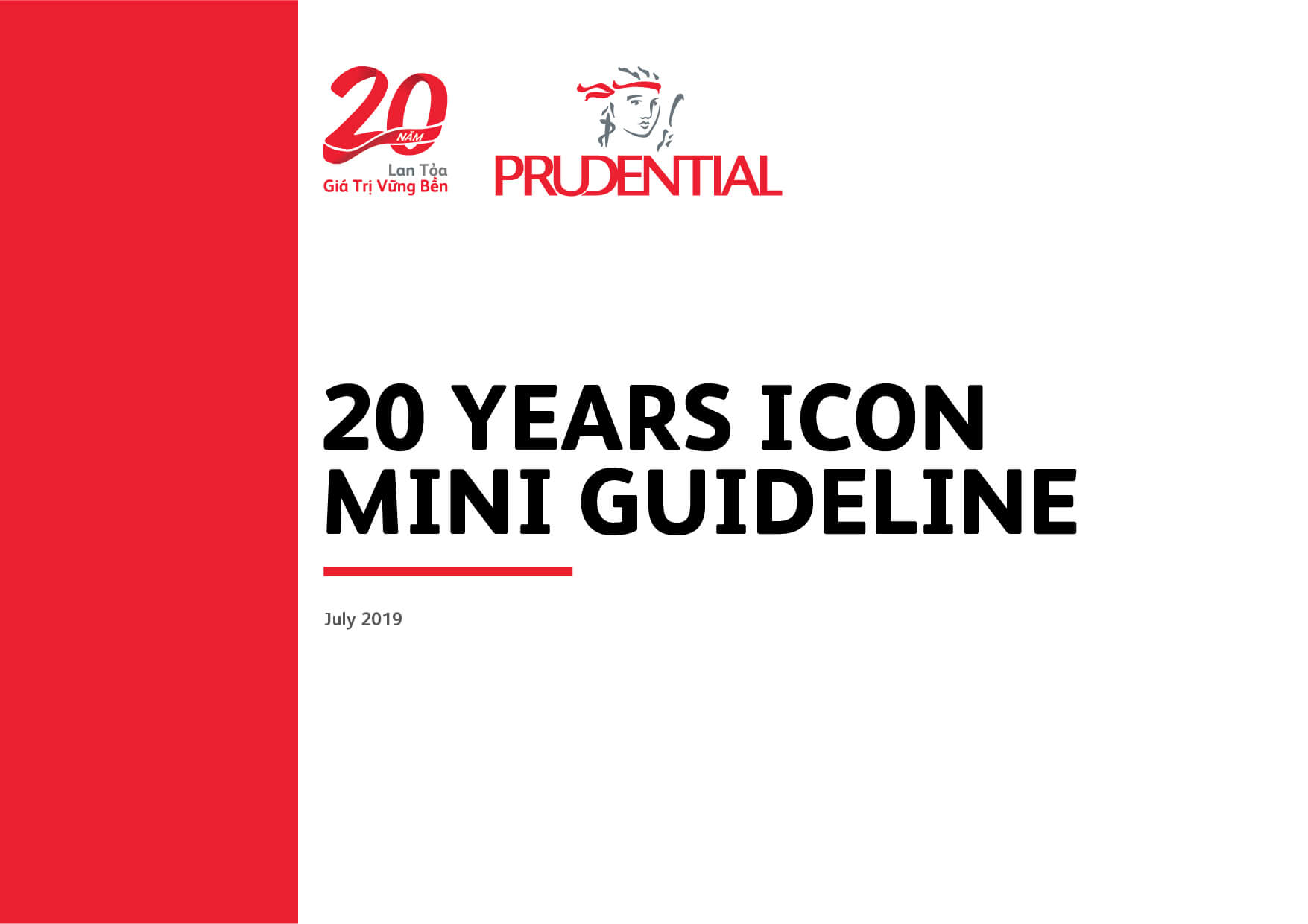 Client Prudential Vietnam Year 2019 Agency DDB&Tribal Vietnam Link Prudential 20 Years Anniversary Prudential Vietnam’s 20th Anniversary Icon & Guideline This icon was designed as a part of the 20th anniversary campaign for Prudential Vietnam. The icon, alongside with Prudential logo, was used on all marketing materials and media platforms for the campaign.