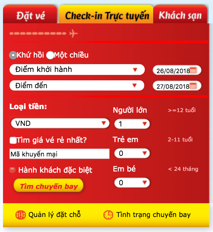 - Far left is the section’s description that reads: “Let’s plan your next trip with VietjetAir.” Each section will have its own description text